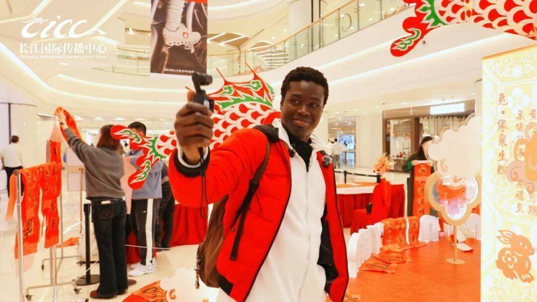 华中师范大学塞内加尔籍博士生郭飞龙在武汉感受年味