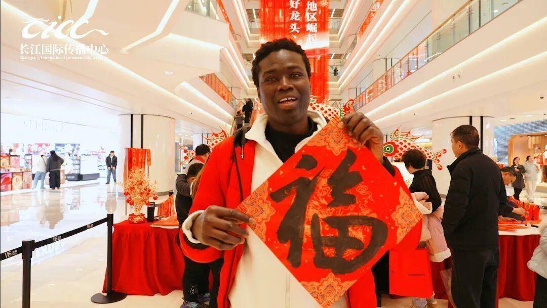 对华中师范大学塞内加尔籍博士生郭飞龙来说,“福”是从笔尖流淌出去的心意。他把亲手写的“福”字送给路人,突然懂了:“福不是一个人独享,大家享福才是真的幸福。”