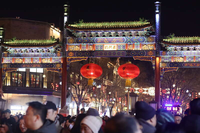 2月17日,北京,前门正阳门彩灯璀璨,人头攒动。中青报·中青网记者 余冰玥/摄