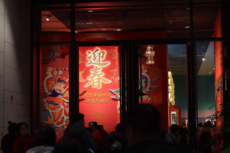 2月18日,北京,中国工艺美术馆(中国非物质文化遗产馆)举办“迎春——绵竹年画中的年俗与新韵”展览,系统梳理年画与春节习俗的联系,观众沉浸式体验“年画里的中国年”。中青报·中青网记者 余冰玥/摄