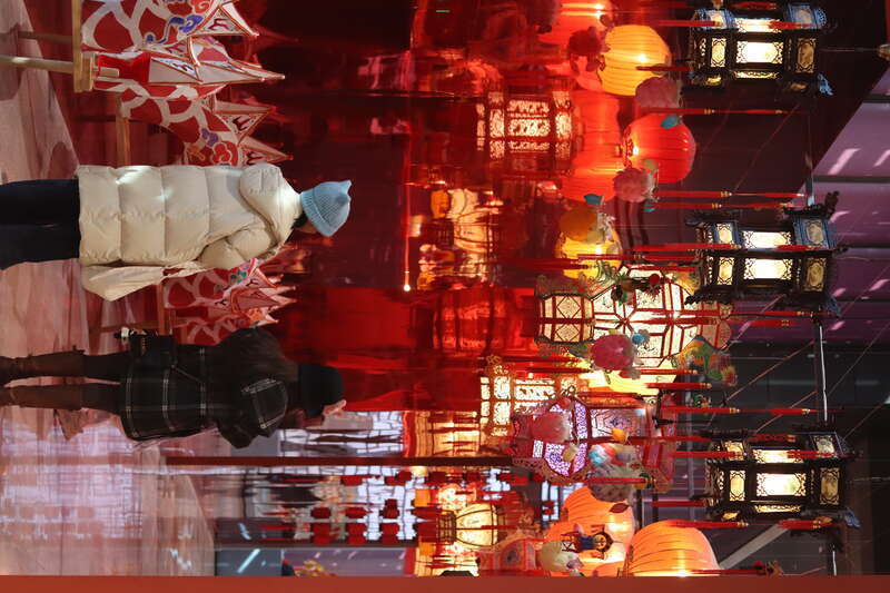 2月18日,北京,在中国工艺美术馆(中国非物质文化遗产馆)“气象万千——中国非遗保护实践主题展”,游客驻足欣赏彩灯。中青报·中青网记者 余冰玥/摄