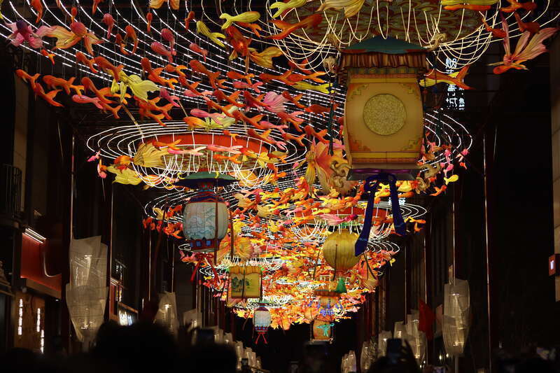 2月17日,北京,前门步行街及周边商圈彩灯璀璨,吸引大批游客赏灯。中青报·中青网记者 余冰玥/摄