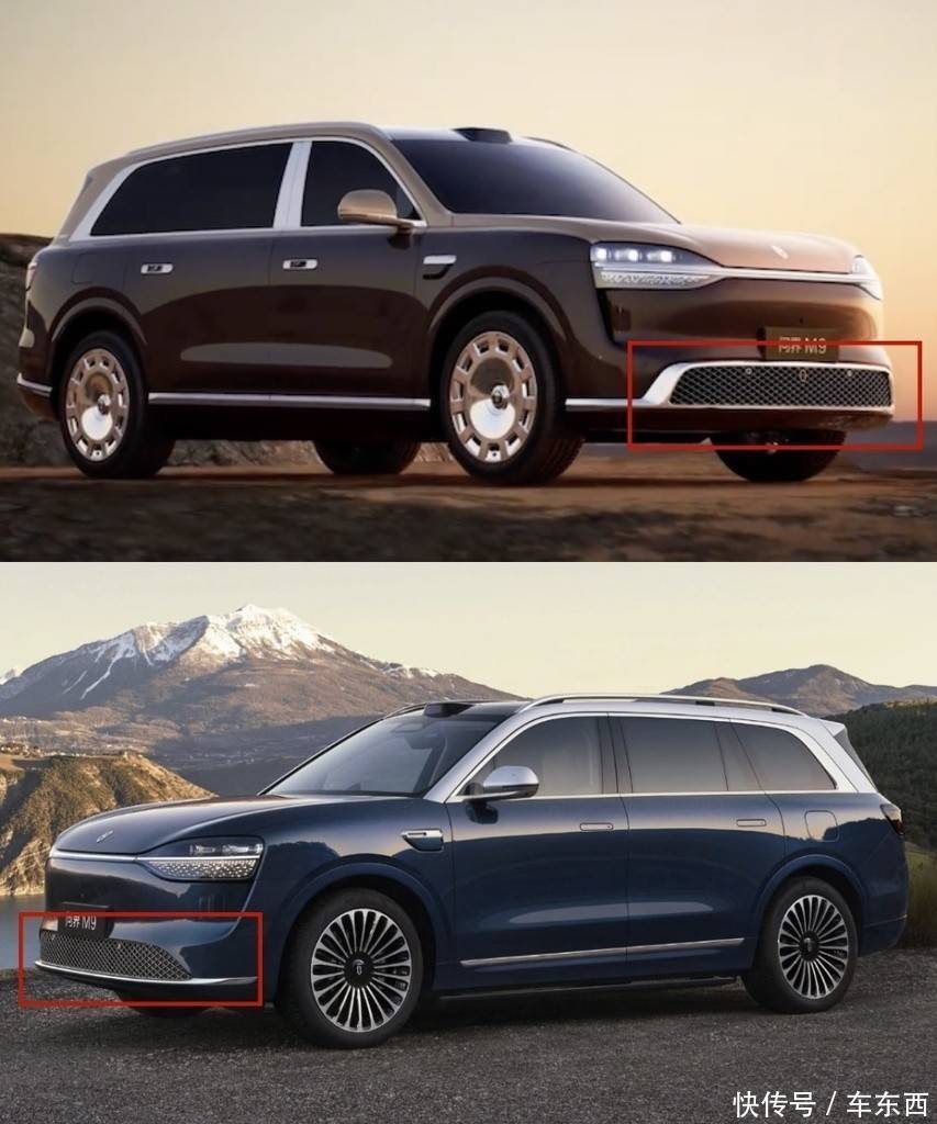 ▲全新一代问界M9(图上)和工信部上的新款问界M9(图下)