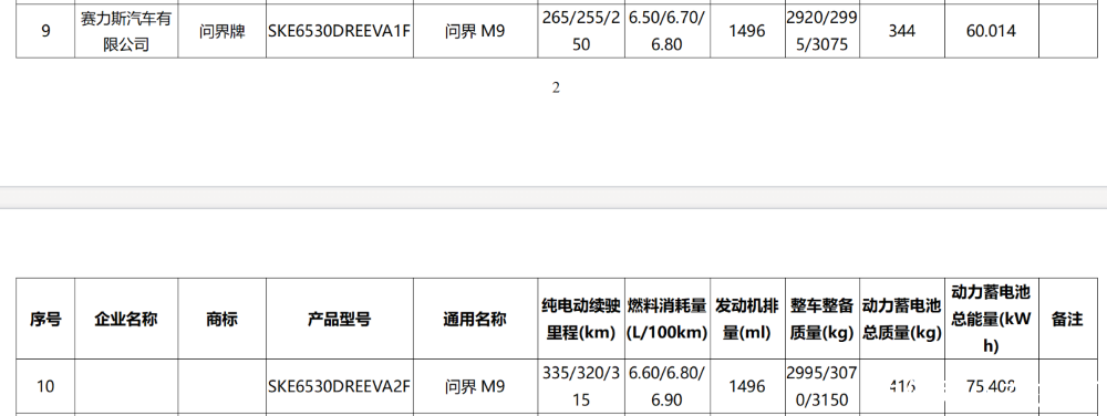 ▲新款问界M9增程版电池信息