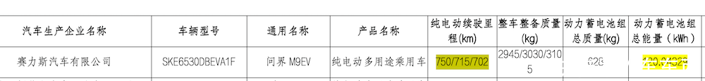 ▲新款问界M9纯电版电池信息
