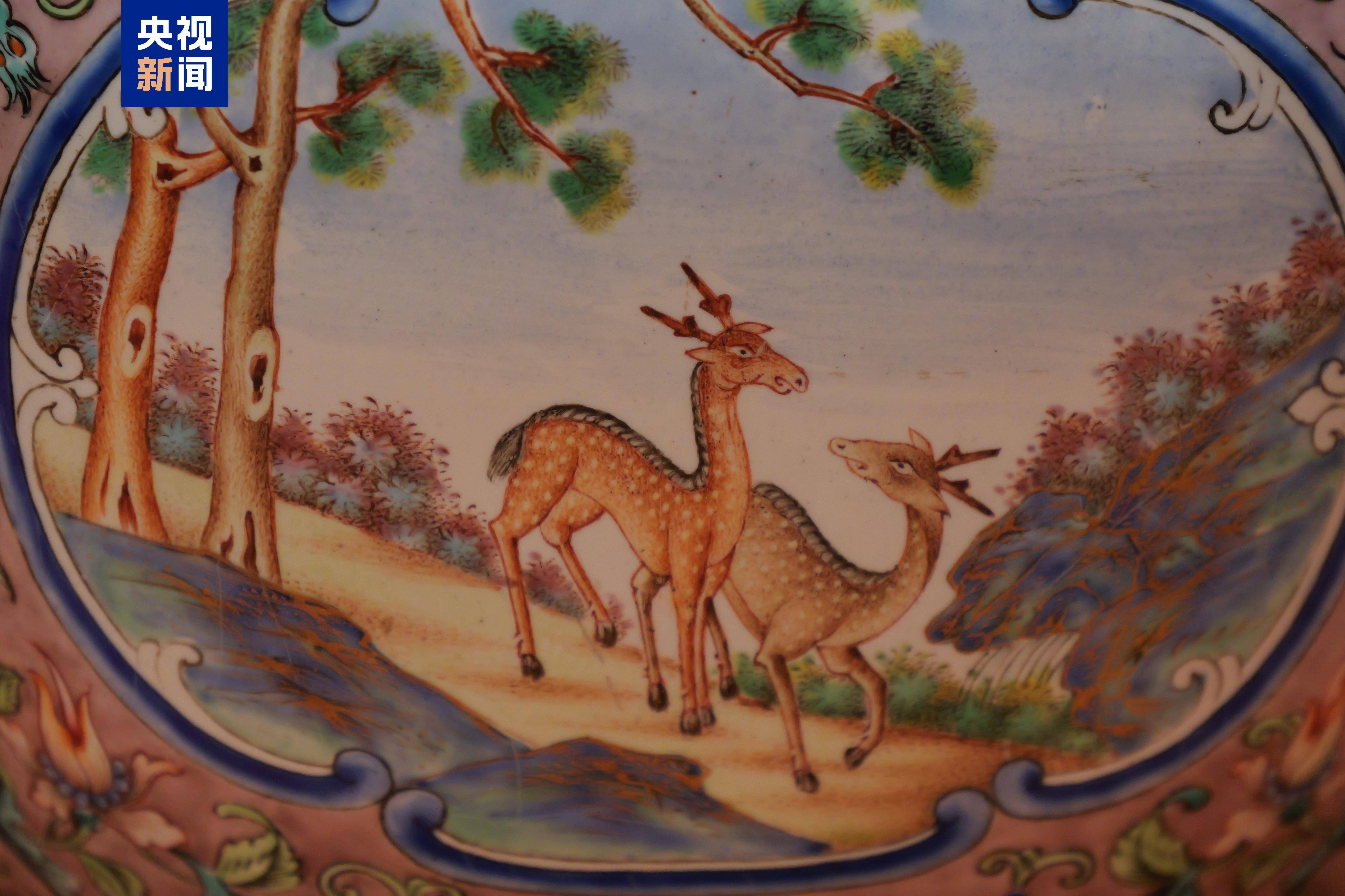 r这个手炉上画了两只小鹿
