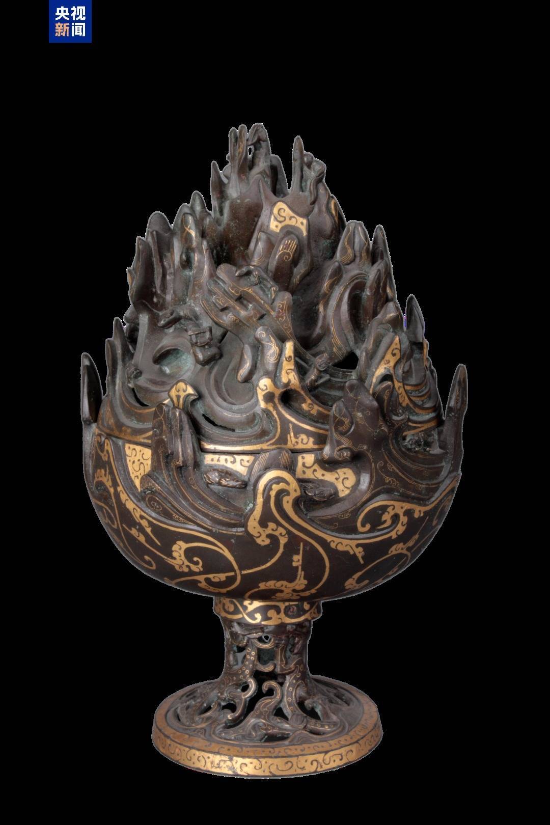 △西汉错金铜博山炉,河北博物院藏。